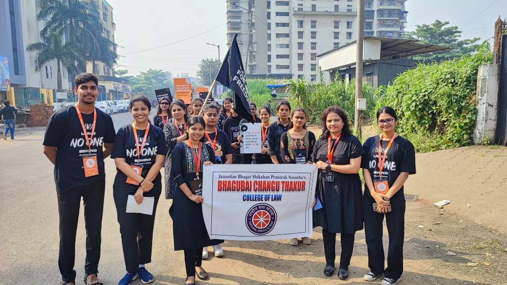 प्रतिनिधी (पालिका प्रशासन) : गेल्या दशकापासून, मानवी तस्करी हा जगातील संघटित गुन्हेगारीचा सर्वात वेगाने वाढणारा प्रकार बनत आहे. याबाबत, जमसमान्यांमध्ये जागृती होणे आवश्यक असून मानवी तस्करी कायमस्वरूपी बंद करण्याच्या विरोधातील लढाईला न्यायिक बळ देणे आवश्यक आहे. विधी विद्यार्थी आणि विधी क्षेत्रातील कायदेतज्ञांची एकप्रकारे सामाजिक जबाबदारी आहे. असे मत बीसीटी विधी विद्यालय, खांदा कॉलनीच्या प्राचार्या सानवी देशमुख यांनी व्यक्त केले. त्या, ‘मानवी तस्करी’ बाबत महाविद्यालयातर्फे आयोजित जागृतकता अभियान अंतर्गत विद्यार्थ्यांच्या ‘वॉक फॉर फ्रीडम’ या रॅलीला संबोधित व मार्गदर्शन करताना बोलत होत्या.