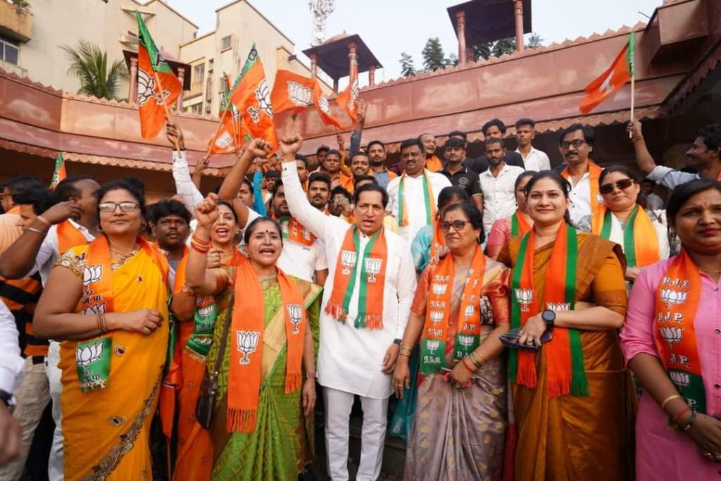 नवी मुंबई भाजपा जिल्हाध्यक्ष संदीप नाईक यांनी मध्यप्रदेश, राजस्थान आणि छत्तीसगड या तिन्ही राज्यांमध्ये मोठ्या फरकाने भाजपाचा विजय झाल्याचे सांगून आगामी लोकसभा निवडणुकीची पाच राज्यांची निवडणूक ही सेमी फायनल असेल, काटे की टक्कर होईल असे भाकीत वर्तविण्यात आले होते. मात्र पंतप्रधान नरेंद्र मोदी यांच्या नेतृत्वाखाली भाजपाने विरोधकांना चारी मुंड्या चित केल्याचे जिल्हाध्यक्ष नाईक म्हणाले. केंद्रातील भाजपा सरकारने देशातील सर्वच राज्यांच्या विकासाला पाठबळ दिले आहे. सर्व घटकांसाठी कल्याणाच्या योजना राबविल्या आहेत. यह तो झाकी है… असे सांगत त्यांनी आगामी लोकसभेमध्ये देखील भाजपाचा विक्रमी विजय होईल, असा विश्वास व्यक्त केला. नवी मुंबई आणि ठाण्यातील निवडणुकांमध्ये देखील भाजपाचीच सत्ता येईल.
