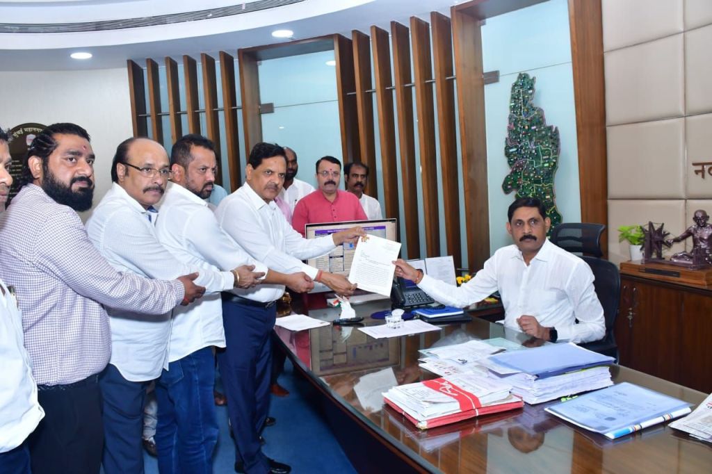 प्रतिनिधी/पालिका प्रशासन : नवी मुंबई परिसरात पुनर्विकासाचे वारे जोरात वाहू लागले आहे. कित्येचे सोसायट्यांच्या पूर्णविकासाचे काम प्रगती पथावर आहे.असे असताना नवी मुंबईतील काही राजकीय घटकांकडून विकासकांना सहाय्याकांच्या व्दारे विकासकांना दम देने , अमुक एका बिल्डला काम द्या, आमच्याकडूनच रेती ,सिमेंट,स्टील,रेडिमिक्स माल घ्या, आमचाच पी.एम.सी. नेमा, अमुक याला टेंडर देऊ नका अशा विवीध प्रकारे धमकावले जात आहे तसेच सोसायटीतील पदाधिकाऱ्यांवरही नानाविध प्रकारे दबाव टाकला जात आहे. नवी मुंबईत अशा प्रवृत्ती वाढल्या असून त्यामुळे सोसायटी पदाधिकारी तसेच विकासक यांच्यात प्रचंड भीतीचे वातावरण निर्माण झाले आहे. म्हणून शिवसेनेचे उपनेते विजय नाहटा व संपर्क प्रमुख किशोर पाटकर यांच्या नेतृत्वात शिवसेनेचे शिष्ट मंडळ घेऊन नवी मुंबईचे अतिरिक्त पोलीस आयुक्त येनपुरे तसेच नवी मुंबई महानगर पालिकेचे आयुक्त डॉ.कैलाश शिंदे यांची भेट घेतली.