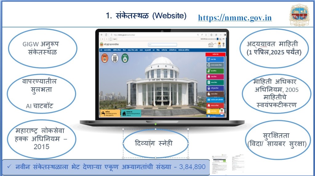 नागरिकांच्या सोयीसाठी ‘माय NMMC’ ॲप, ई-ऑफिस प्रणाली, आणि प्रशिक्षण कार्यक्रम राबवण्यात आले. घनकचरा व्यवस्थापनात RFID तंत्रज्ञानाचा वापर आणि टाकाऊ कपड्याच्या पुनर्विकासाचा देशातील पहिला प्रयोग यामुळे NMMC चे विशेष कौतुक झाले. आयुक्त डॉ. शिंदे यांनी सर्वांचे अभिनंदन करत भविष्यात अधिक कार्यक्षम आणि लोकाभिमुख प्रशासनासाठी कटिबद्धता दर्शवली.