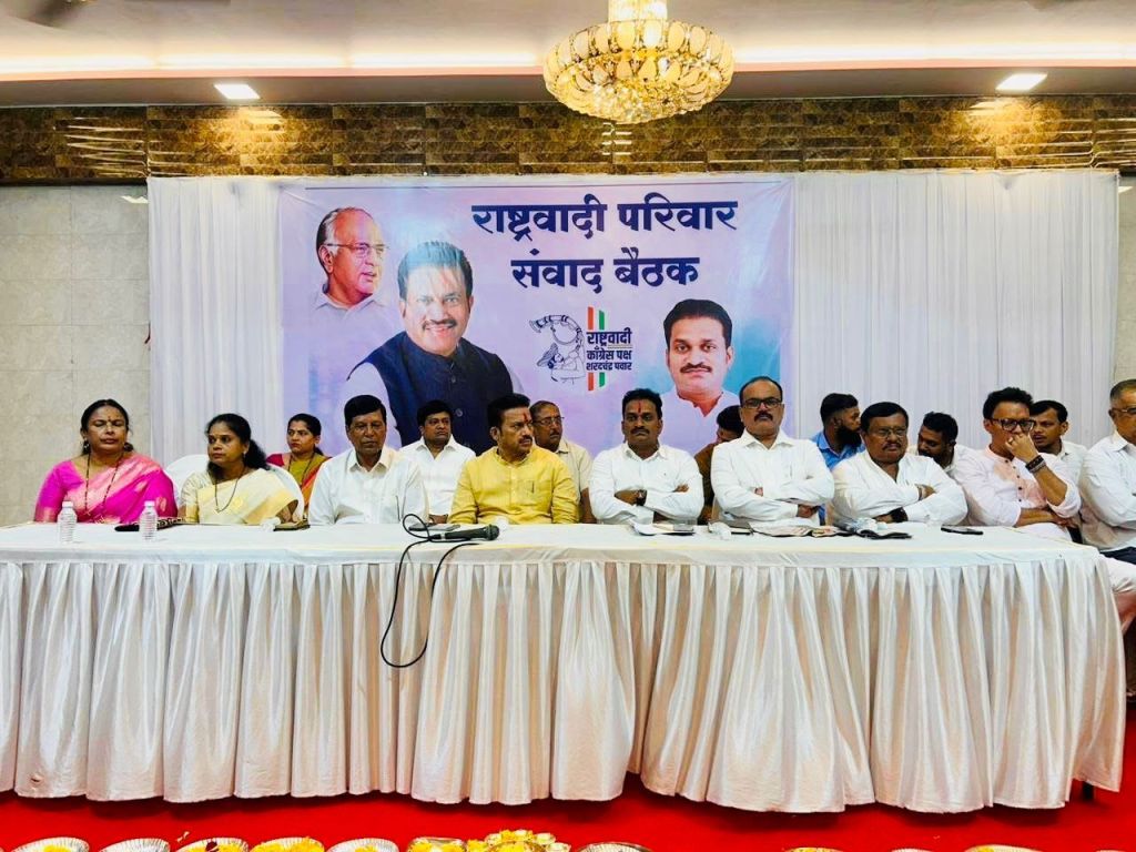 पालिका प्रशासन/सुदिप घोलप : राष्ट्रवादी काँग्रेस पक्षात शरदचंद्र पवार गटाने नवी मुंबईत नवचैतन्य निर्माण करणारी बैठक उत्साहात पार पाडली. या राष्ट्रवादी परिवार संवाद बैठक व जिल्हाध्यक्ष पदग्रहण सोहळ्यात हजारो कार्यकर्त्यांचा प्रचंड उत्साह पाहायला मिळाला. पक्षाचे प्रदेशाध्यक्ष शशिकांत शिंदे यांच्या प्रमुख उपस्थितीत हा सोहळा साजरा झाला.